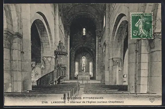 AK Langogne, Intérieur de l`Église (curieux chapiteaux)
