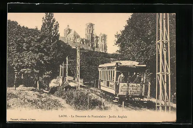 AK Laon, La Descente du Funiculaire-Jardin Anglais, Bergbahn