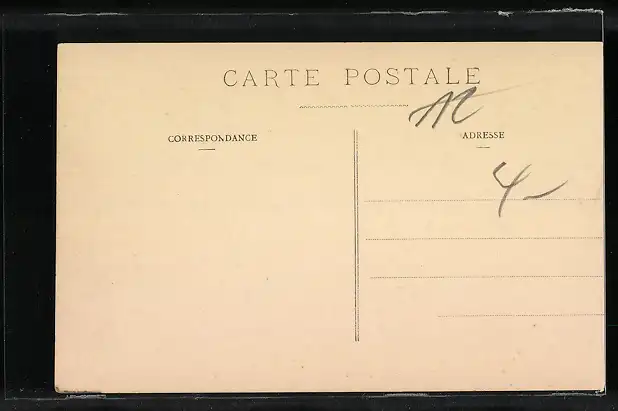 Personenbezogene Daten auf der Rückseite der Karte wurden durch blauen Textmarker unkenntlich gemacht. Die blauen Stellen sind auf die Vorderseite durchgeweicht und wirken sich negativ auf das Postkartenfoto aus