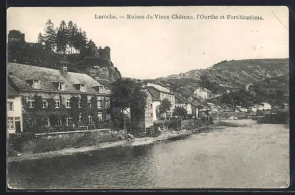 AK Laroche, Ruines du Vieux Château, l`Ourthe et Fortifications