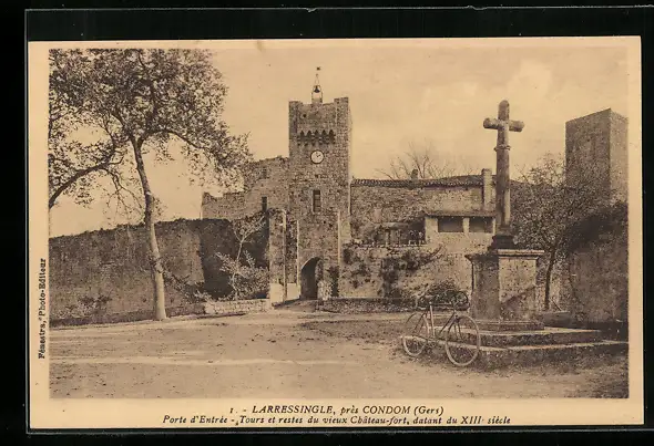 AK Larressingle, Porte d`Entree Tours et restes du vieux chateau-fort, datant du XIIIe siecle