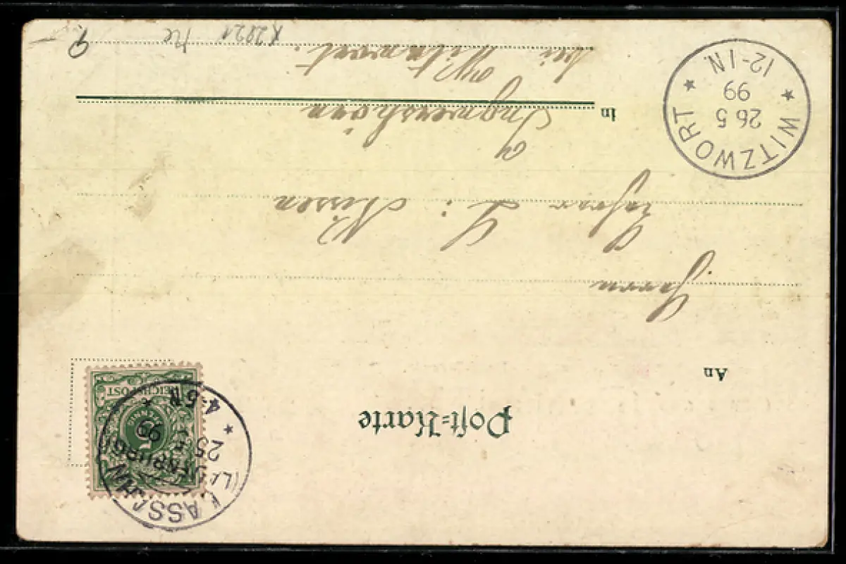 alte Ansichtskarte, gelaufen 1899, Eckknick oben rechts, guter Zustand