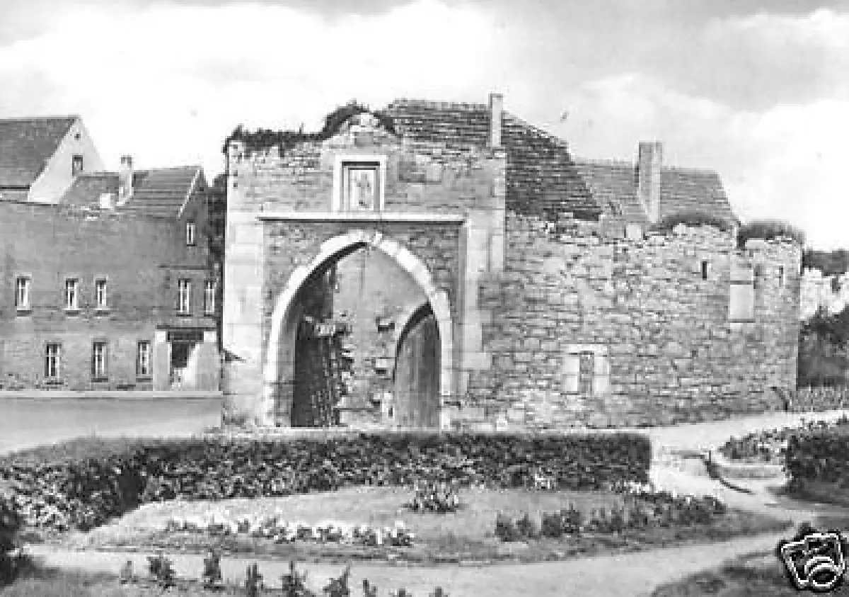 Ansichtskarte, Laucha Unstrut, Kr. Nebra Obertor Erhaltung I-II, postalisch gelaufen, gestempelt: Laucha, 9.5.77 Druckvermerk: 1974 Herstellungsland: DDR Verlag: Planet-Verlag Berlin - 03 08 10 021