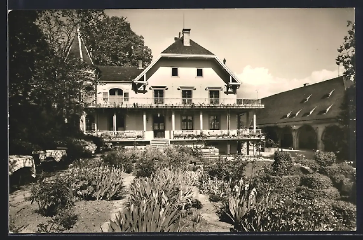 AK Laufen /Baden, Zeppelin-Weinstube, Café im Meierhof, Gartenansicht