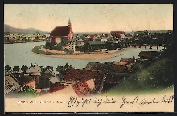 AK Laufen a. Salzach, Ortspartie mit Kirche aus der Vogelschau