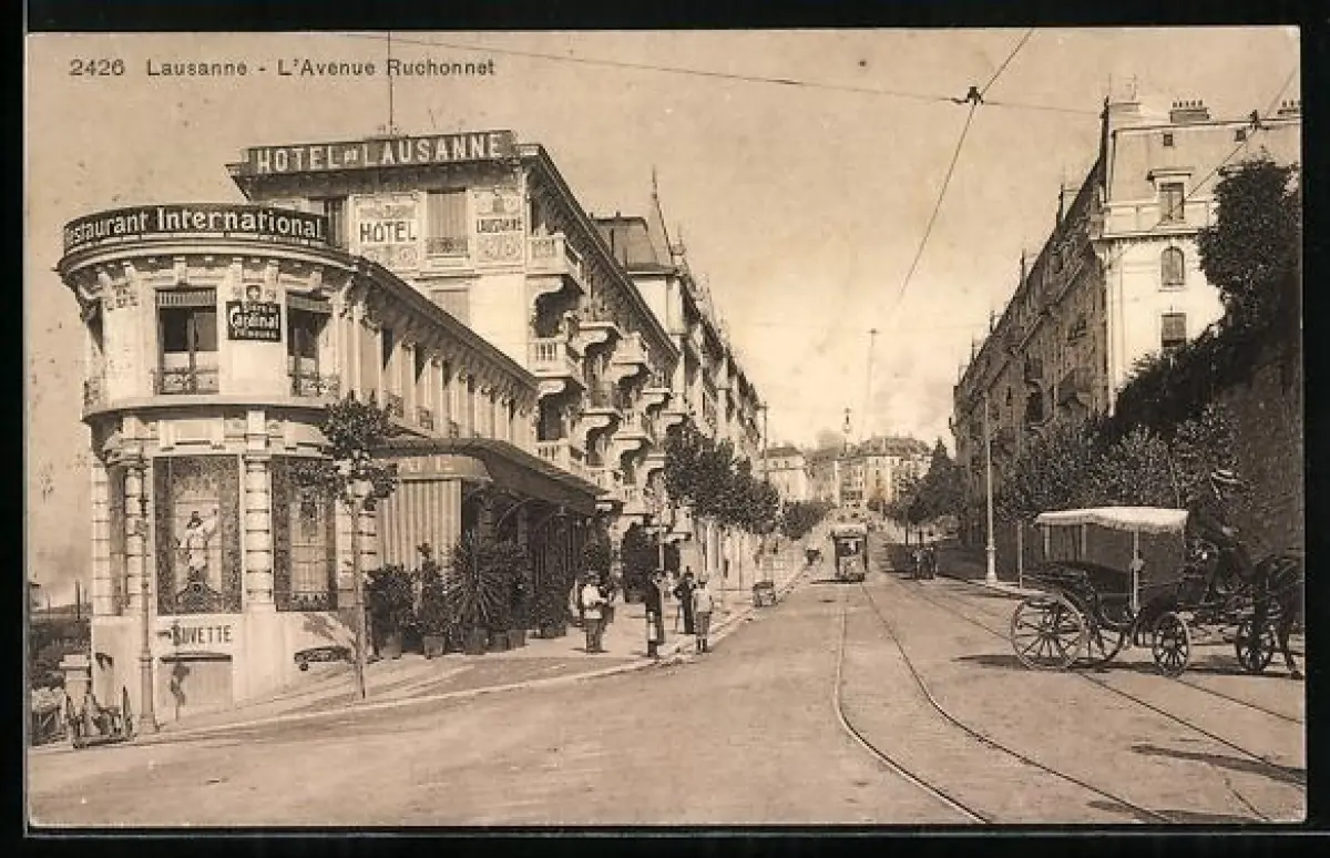AK Lausanne, L`Avenue Ruchonnet, Strassenbahn