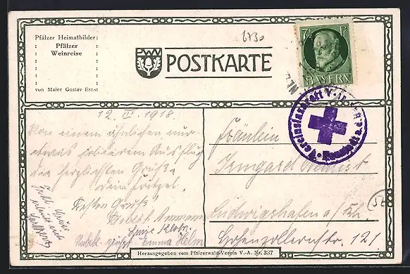 AK Lazarettstempel Neustadt a. d. H., Vereinslazarett V
