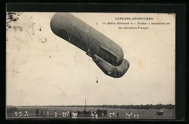 AK Le Ballon Allemand le Draken, manoeuvre par les Aérostiers Francais