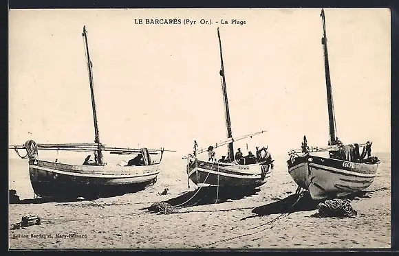 AK Le Barcarès, La Plage avec trois bateaux sur le sable