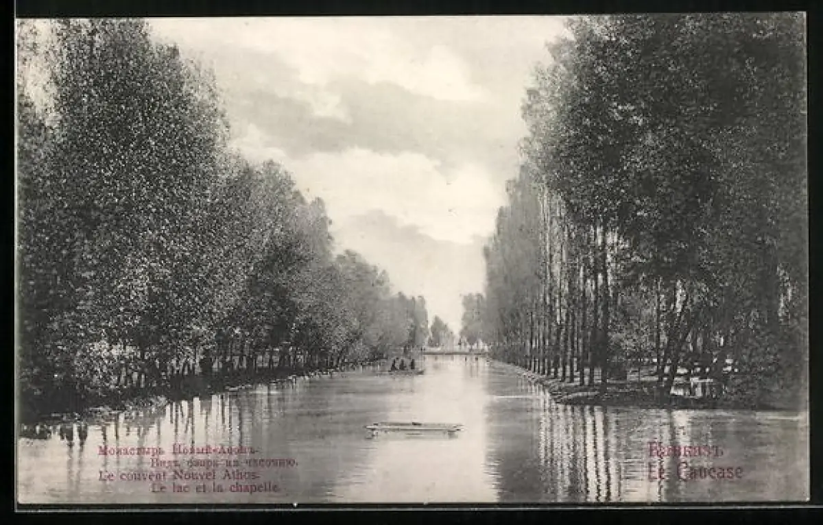 AK Le Caucase, Le couvent Nouvel Athos, Le lac et la chapelle