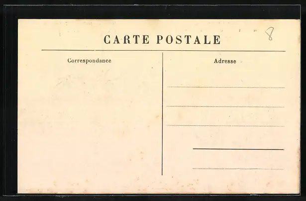 Personenbezogene Daten auf der Rückseite der Karte wurden durch blauen Textmarker unkenntlich gemacht. Die blauen Stellen sind auf die Vorderseite durchgeweicht und wirken sich negativ auf das Postkartenfoto aus