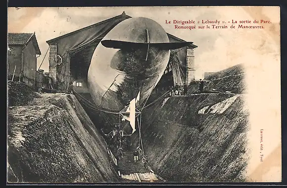 AK Le Dirigeable Lebaudy, la sortie du Parc, französischer Zeppelin