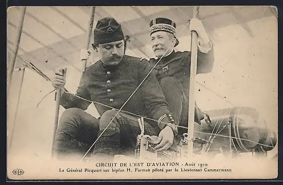 AK Le Général Picquart sur biplan H. Farman piloté par le Lieutenant Cammermann, Flugzeug