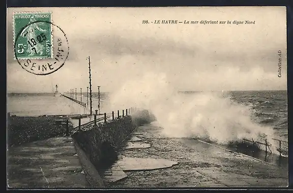 AK Le Havre, La mer déferlant sur la digue Nord
