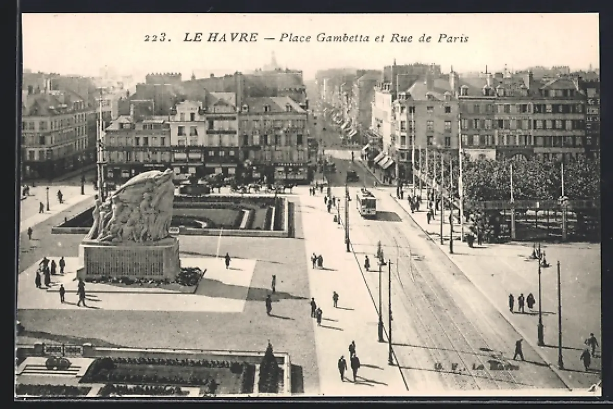 AK Le Havre, Place Gambetta et Rue de Paris, Strassenbahn