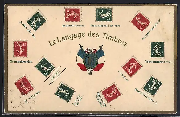 AK Le Langage des Timbres, französische Briefmarkensprache