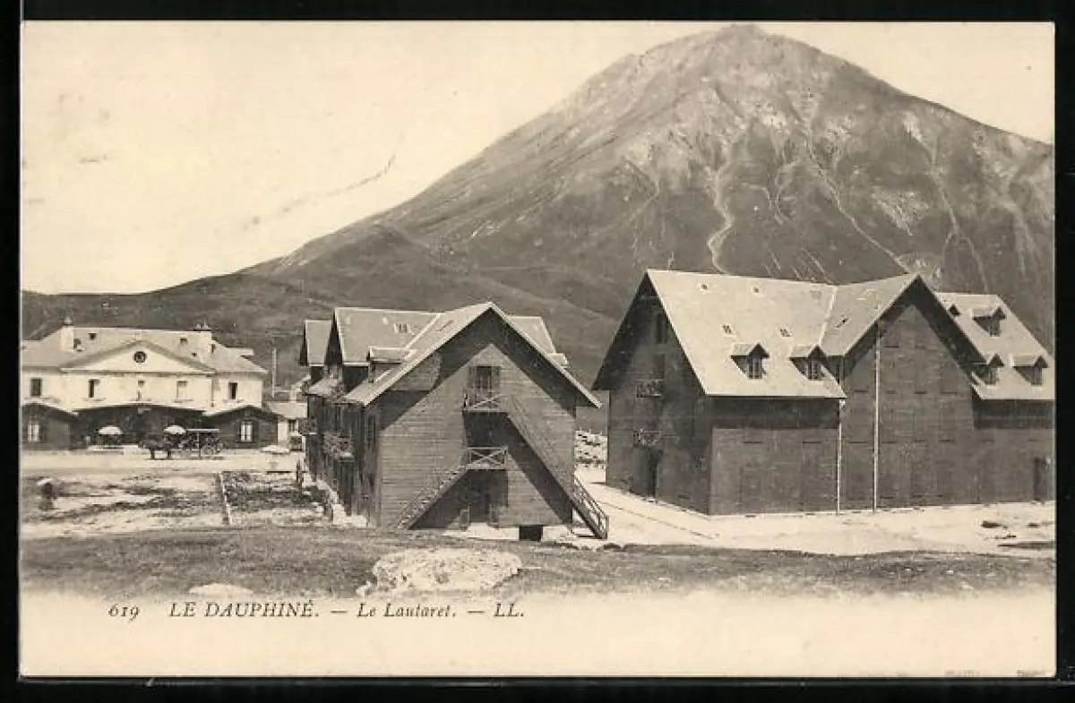AK Le Lautaret, vue des bâtiments avec montagne en arrière-plan