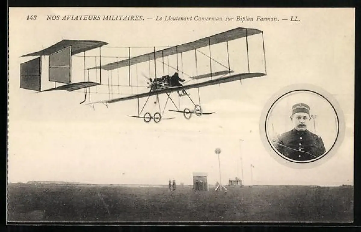 AK Le Lieutenant Camerman sur Biplan Farman, Flugzeug