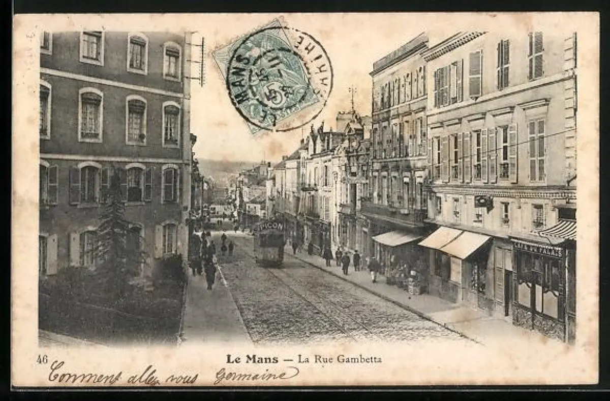 AK Le Mans, La Rue Gambetta, Strassenbahn