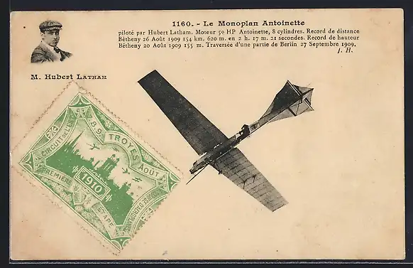AK Le Monoplan Antoinette piloté par Hubert Latham, Flugzeug