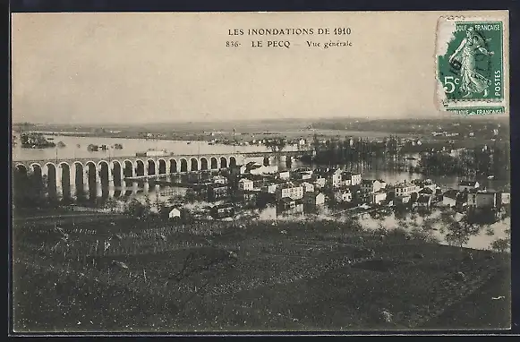 AK Le Pecq, Les inondations de 1910, Vue générale