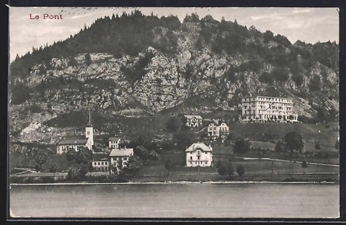 AK Le Pont, Ortspartie mit Kirche am Ufer