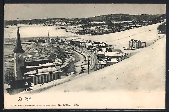 AK Le Pont, Winterliche Ortsansicht am Wasser