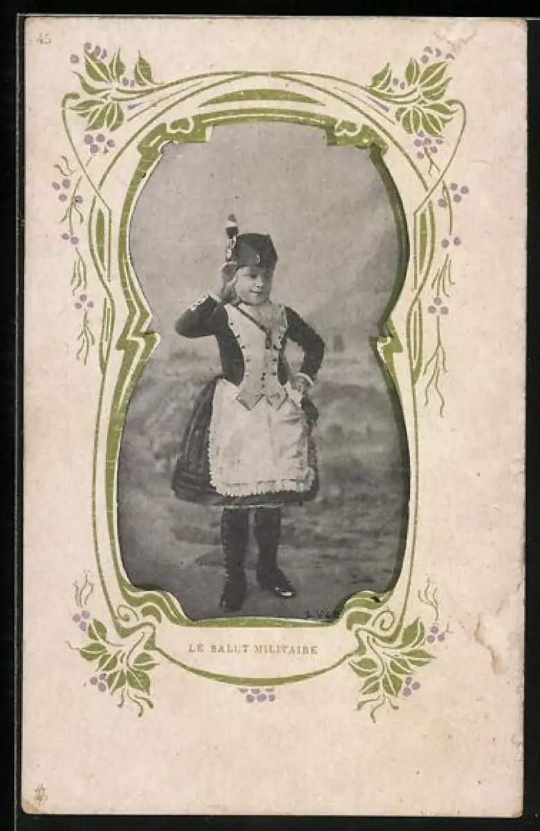 AK Le Salut Militaire, Kind salutiert in Uniform, Kinder Kriegspropaganda