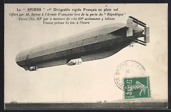 AK Le Spiess, Ier Dirigeable rigide Francais en plein vol, Luftschiff