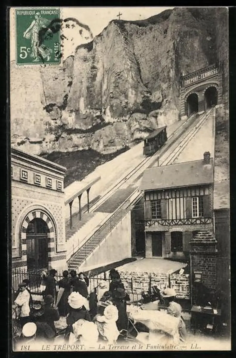 AK Le Tréport, La Terrasse et le Funiculaire, Bergbahn