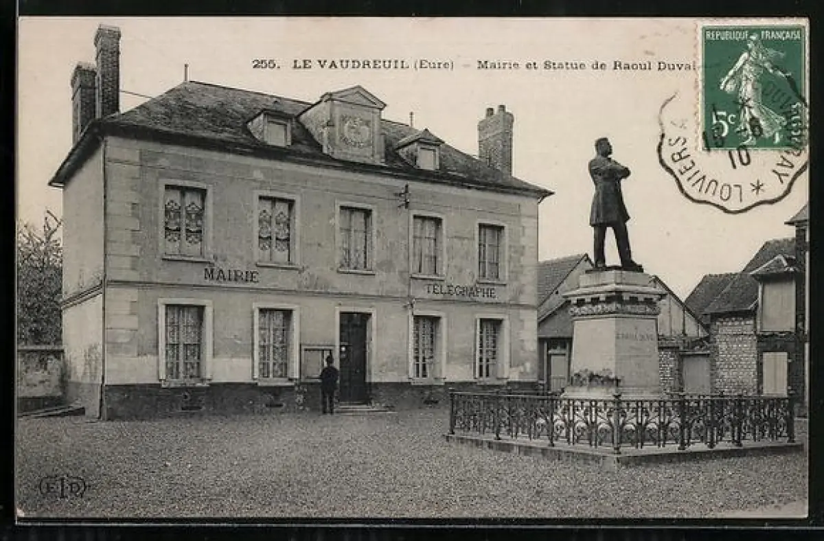 AK Le Vaudreuil /Eure, Mairie et Statur de Raoul Duval