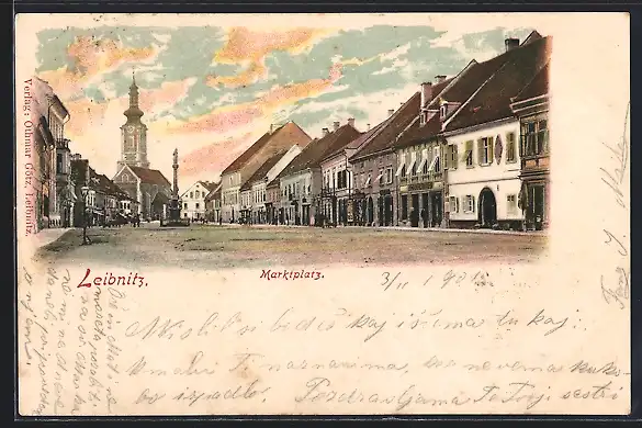 AK Leibnitz, Marktplatz mit Blick zur Kirche