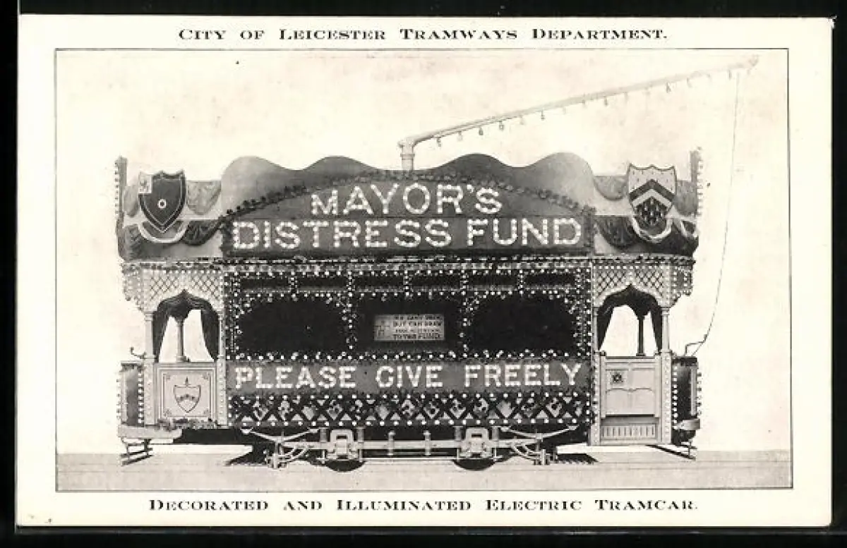 AK Leicester, Decorated and Illuminated Electric Tramcar, Strassenbahn