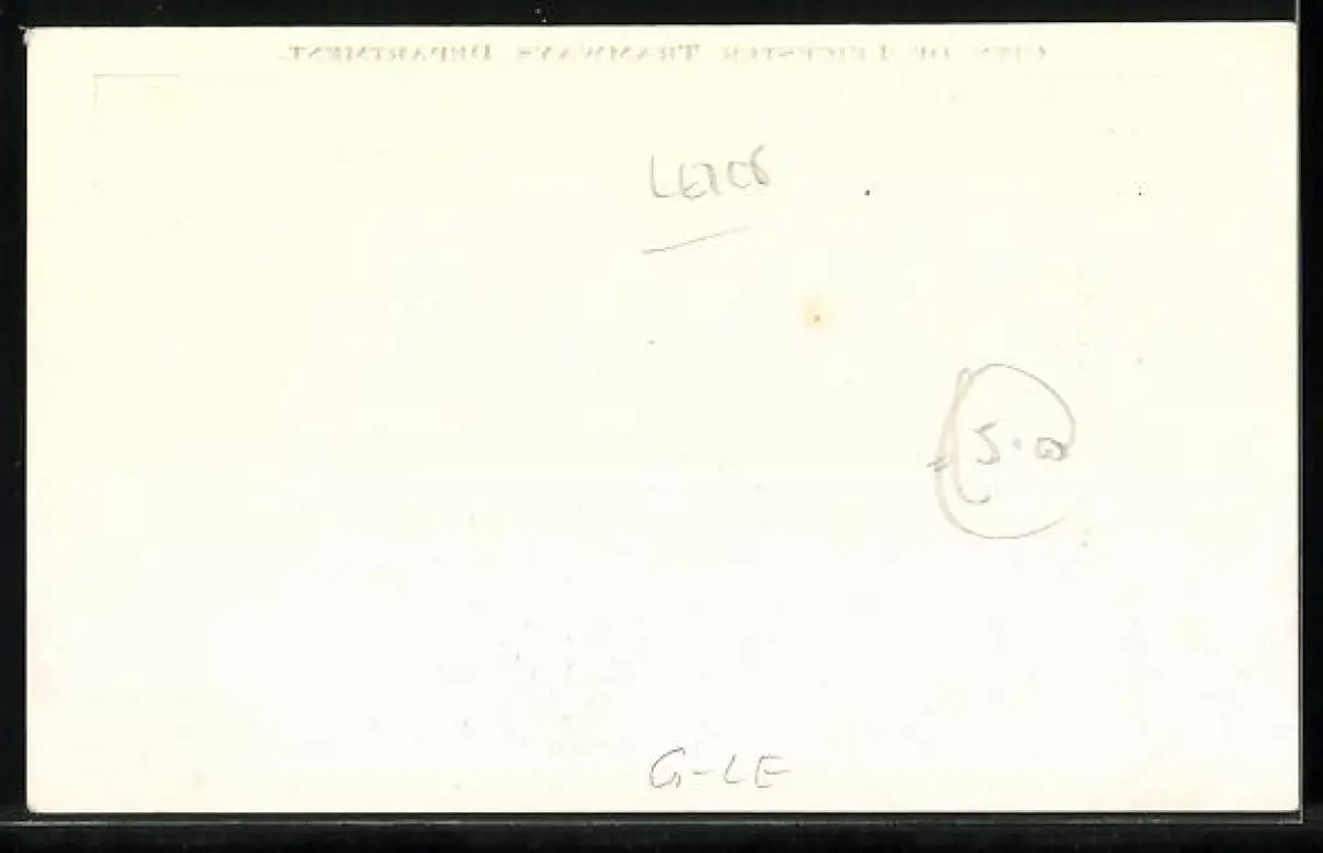 Personenbezogene Daten auf der Rückseite der Karte wurden durch blauen Textmarker unkenntlich gemacht. Die blauen Stellen sind auf die Vorderseite durchgeweicht und wirken sich negativ auf das Postkartenfoto aus