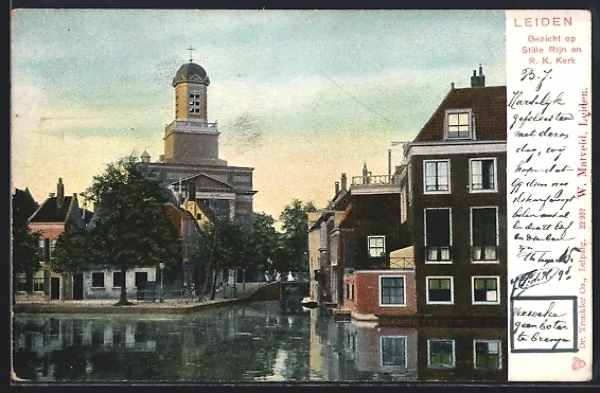 AK Leiden, Gezicht op Stille Rijn en R. K. Kerk