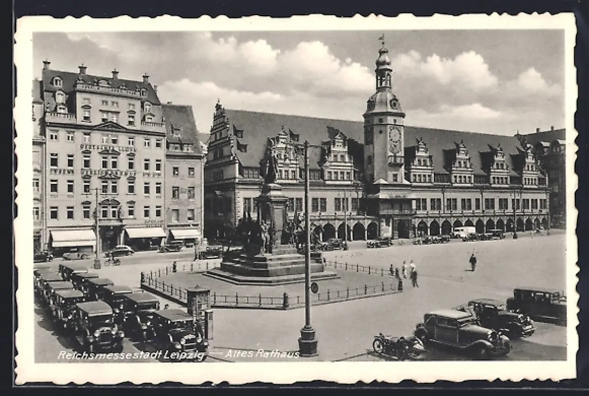 AK Leipzig, Altes Rathaus mit Denkmal