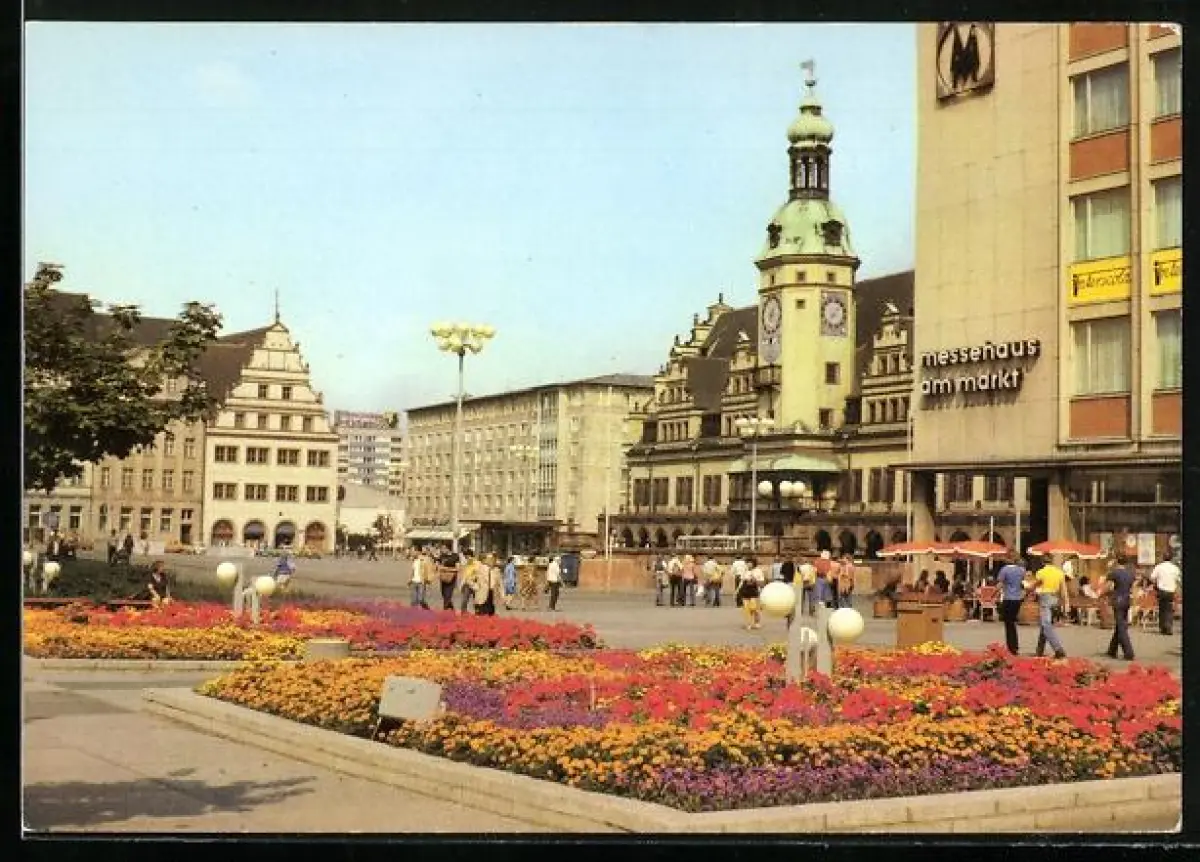 AK Leipzig, Altes Rathaus mit Messehaus am Markt