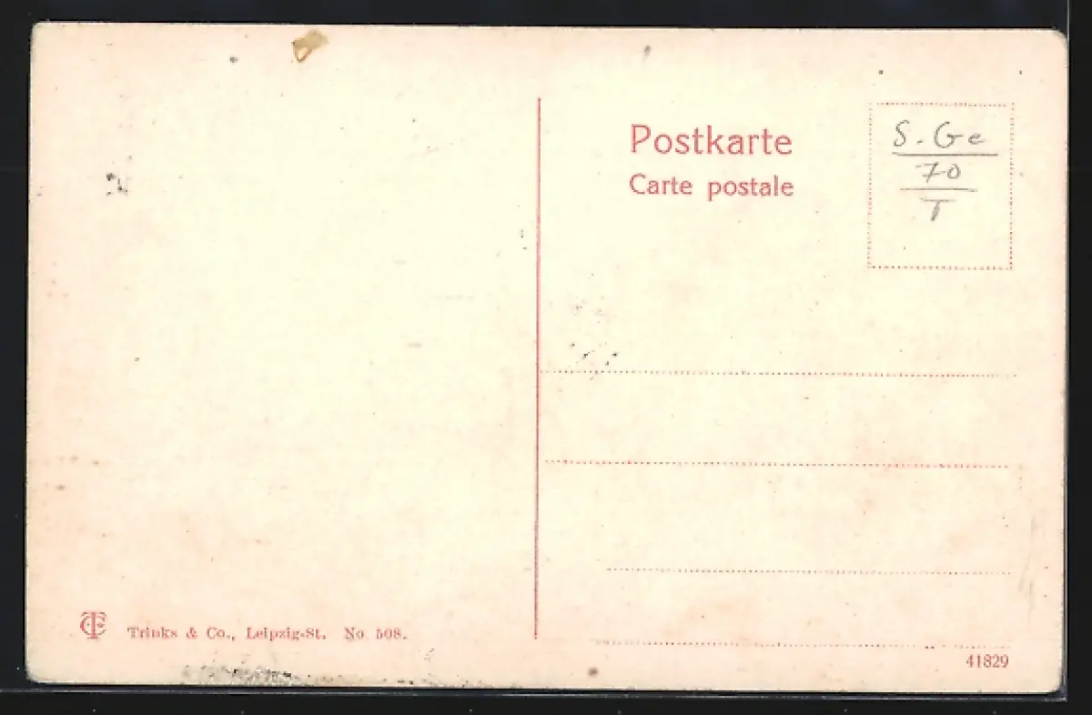 alte Ansichtskarte, ungelaufen, rückseitig Klebe- und Papierreste, guter Zustand