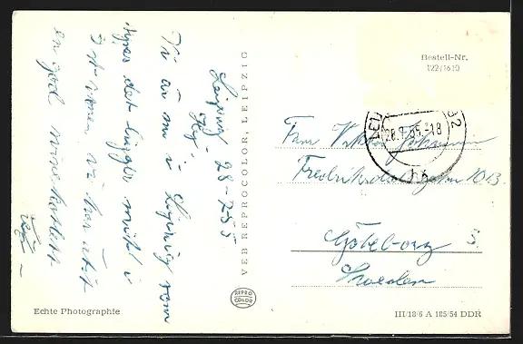 alte Ansichtskarte, gelaufen 1955, Briefmarke entfernt, Eckknick unten re., Stempelspur, guter Zustand