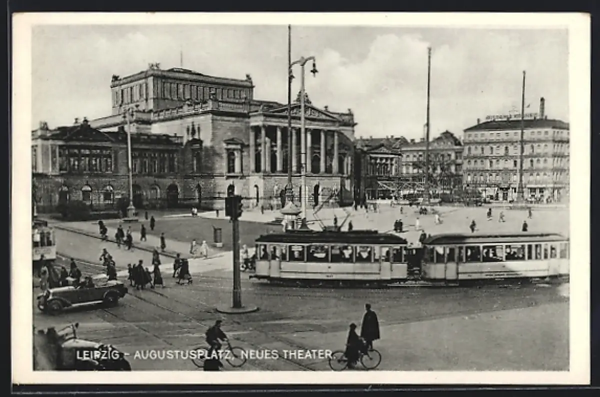 AK Leipzig, Augustusplatz, Neues Theater, Strassenbahn