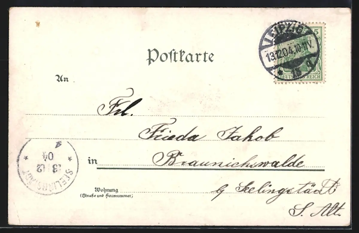 alte Ansichtskarte, gelaufen 1904, Eckknick re. unten, guter Zustand