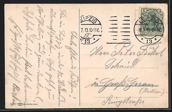 alte Ansichtskarte, gelaufen 1913, Ecken bestoßen, Eckknick oben li., Stempelspur, guter Zustand