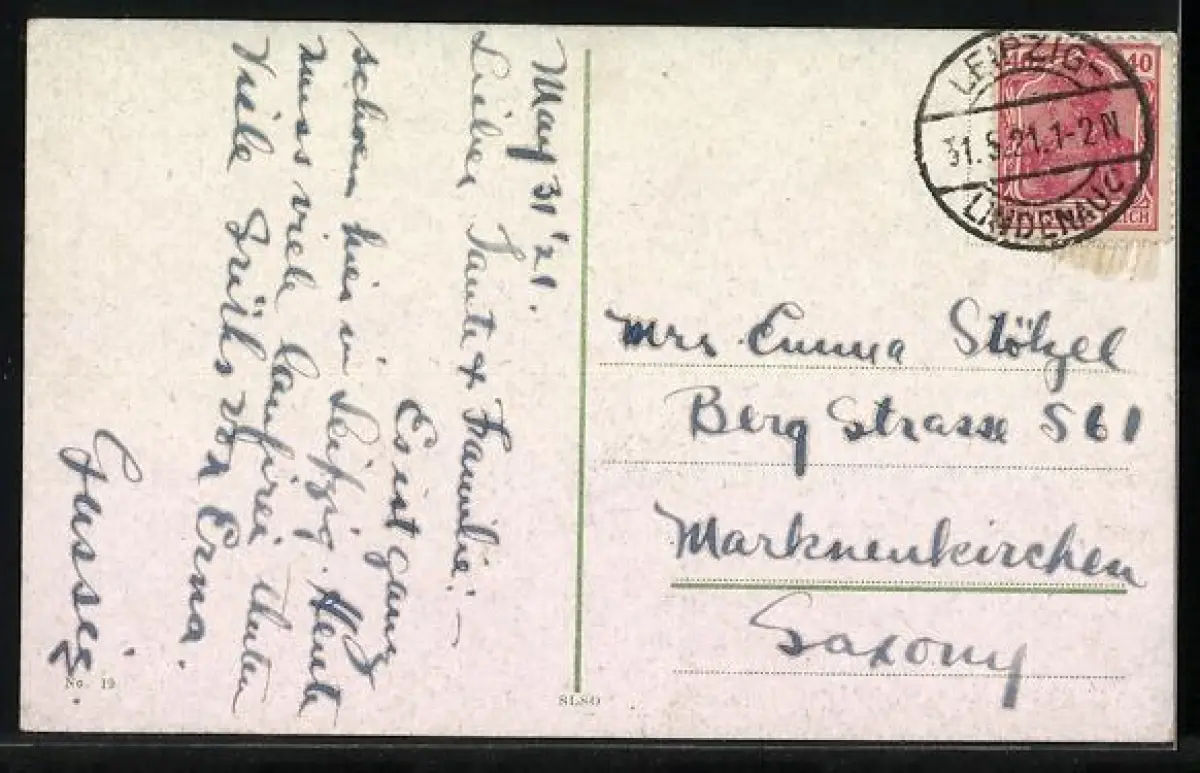 alte Ansichtskarte, gelaufen 1921, Eckknick oben links, Abriebspur unten rechts, guter Zustand