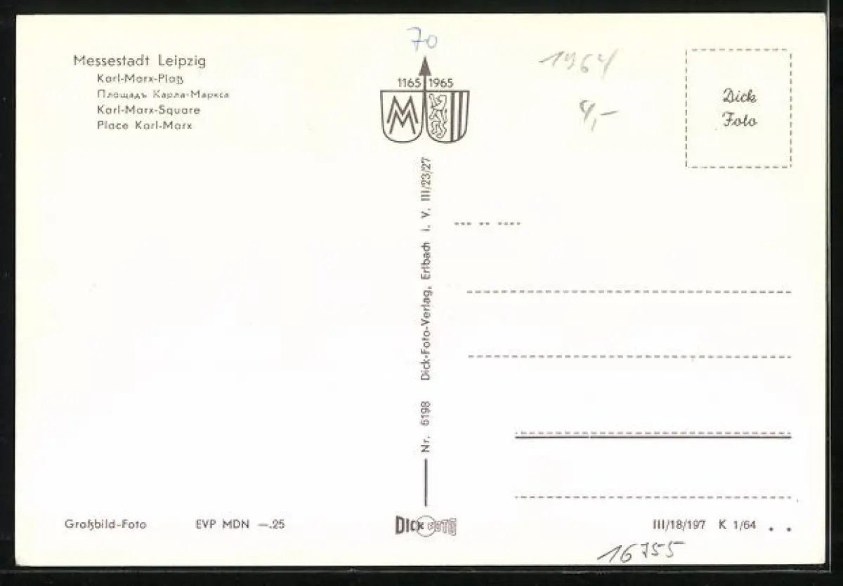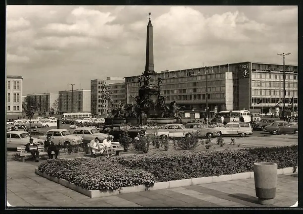 AK Leipzig, Karl-Marx-Platz mit Autos