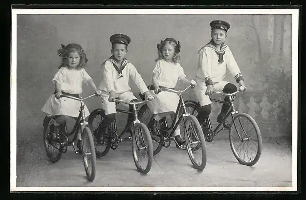 AK Leipzig, Kinder auf Fahrrädern der Firma Adalbert Poethke