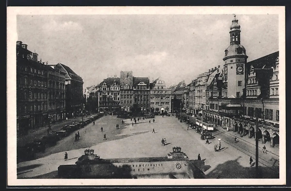 AK Leipzig, Markt und das alte Rathaus, Strassenbahn