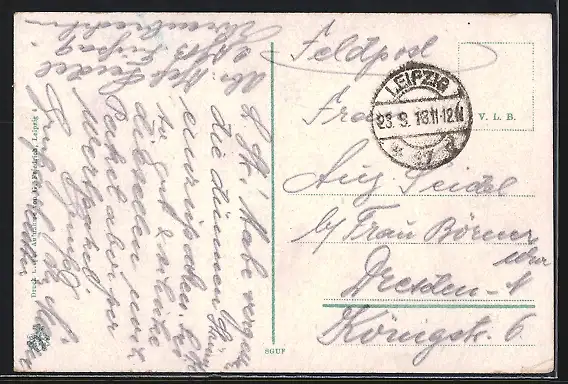 alte Ansichtskarte, gelaufen 1918 als Feldpost, Eckknick links unten, guter Zustand