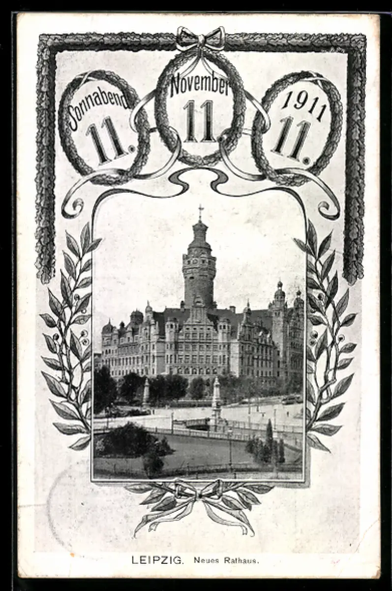 AK Leipzig, Neues Rathaus, Datum 11.11.1911