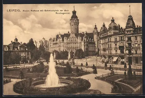 AK Leipzig, Neues Rathaus mit Schmuckplatz vor dem Reichsgericht