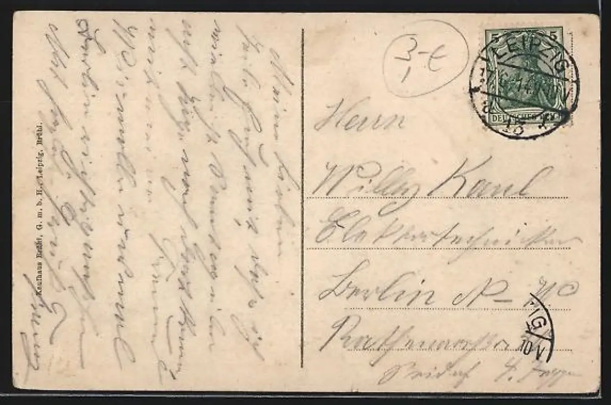 alte Ansichtskarte, gelaufen 1914, Stempelspur, guter Zustand
